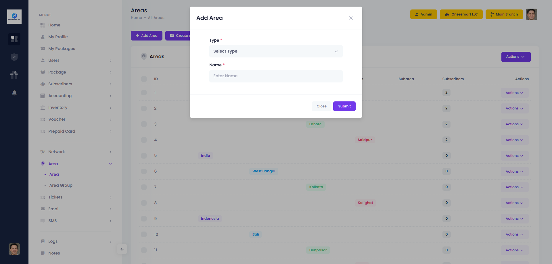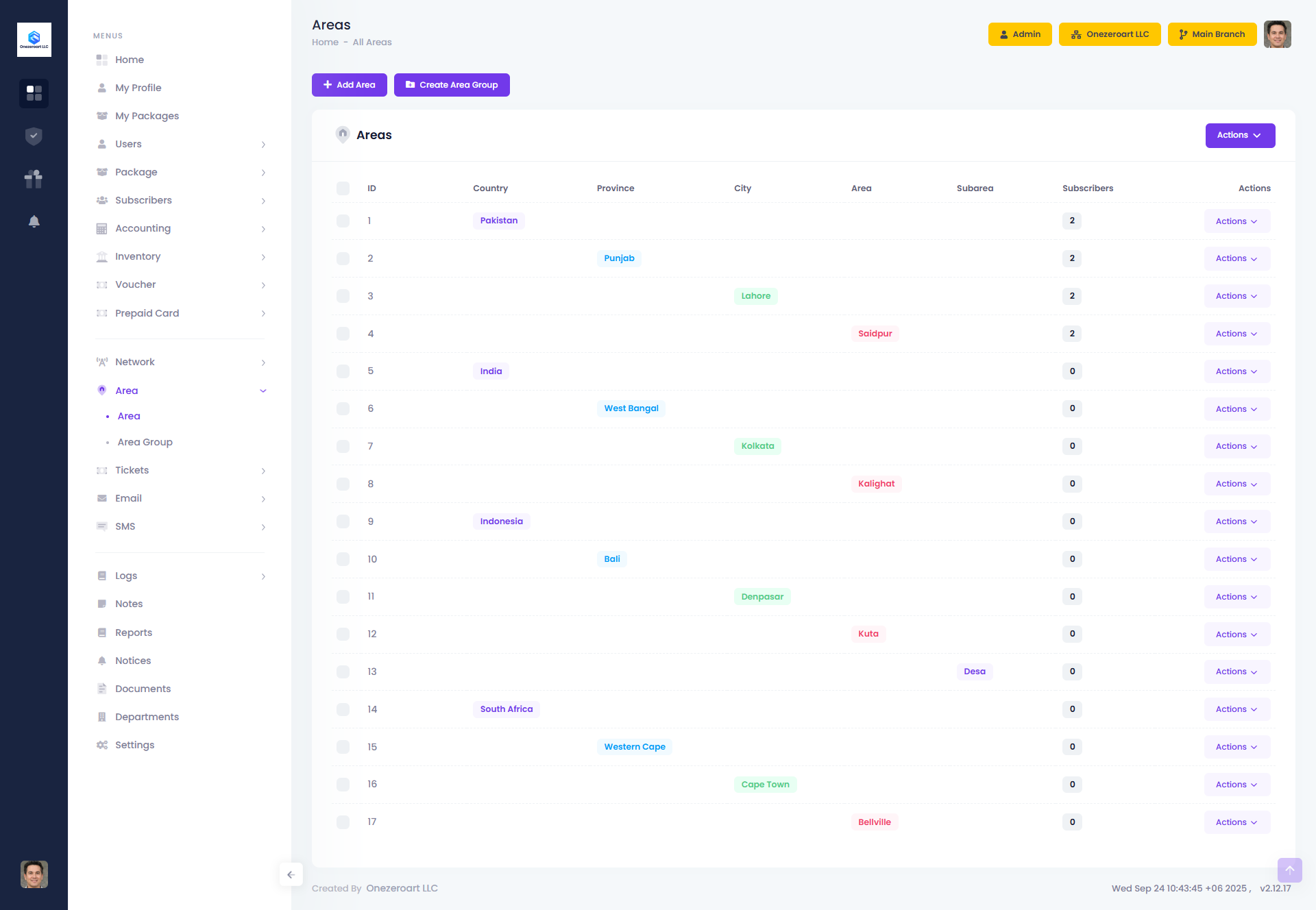 When you add an area, it will appear in the "All Areas" section, and you will have permission to edit or delete it using the "Actions" button.