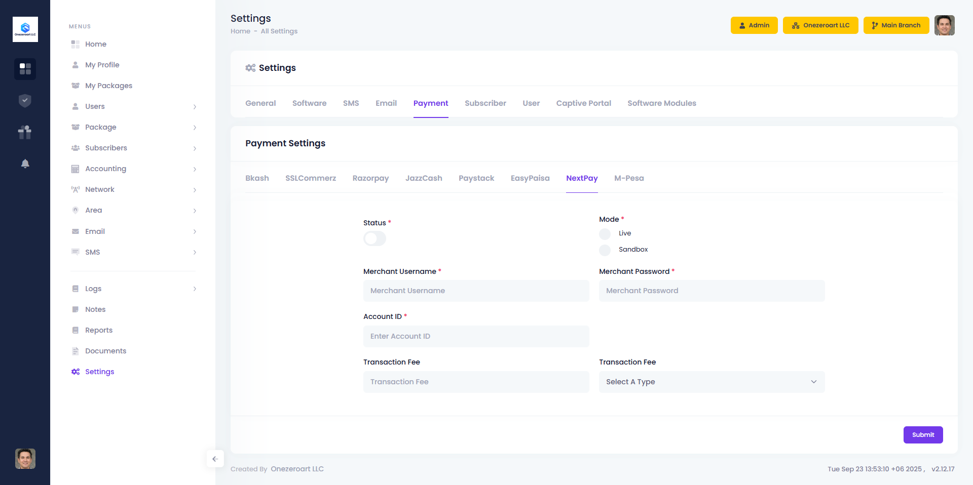 Configure the NextPay payment gateway in ZalUltra CRM to securely process online payments. The integration supports both Live and Sandbox modes, allowing administrators to test transactions before processing real payments.
