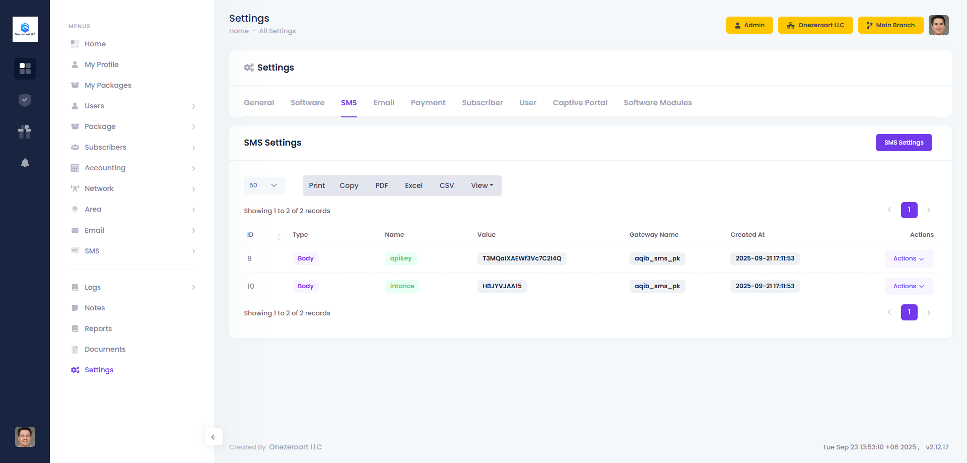 SMS Settings